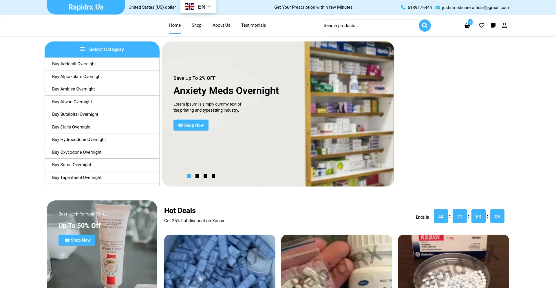 分析表明 rapidrx.us 作为电子商务平台运营,促进商品或服务的在线交易。该网站实现了购物车功能、支付处理系统和产品目录功能,这些是商业零售运营的典型特征。
