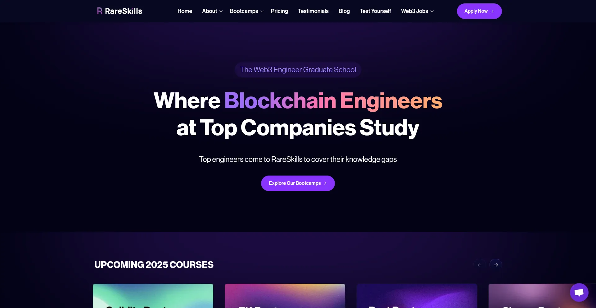 Learn everything you need to know about blockchain technology and become a senior Web3 blockchain engineer with our blockchain bootcamps here at RareSkills.