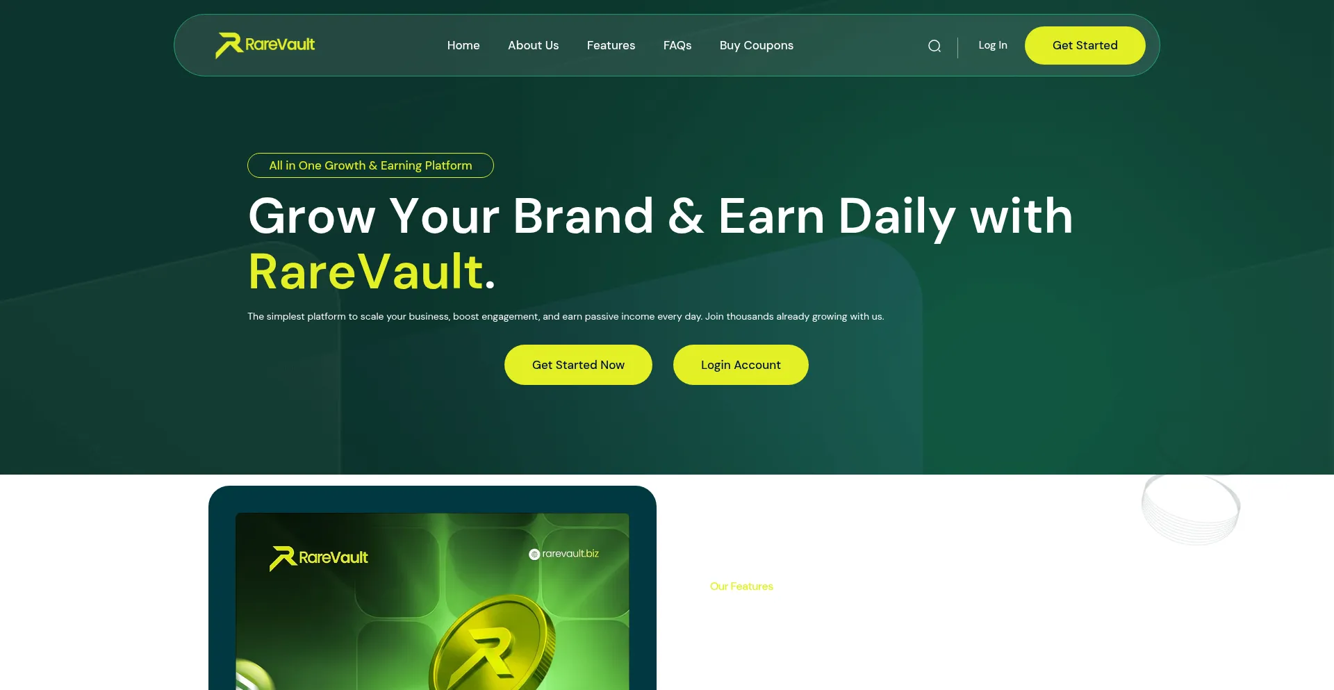 分析显示 rarevault.biz 显示社交媒体图标或链接,但不连接到合法的社交媒体档案。这种欺骗性做法通常用于创造虚假合法性,代表需要立即谨慎的欺诈意图的重要指标。