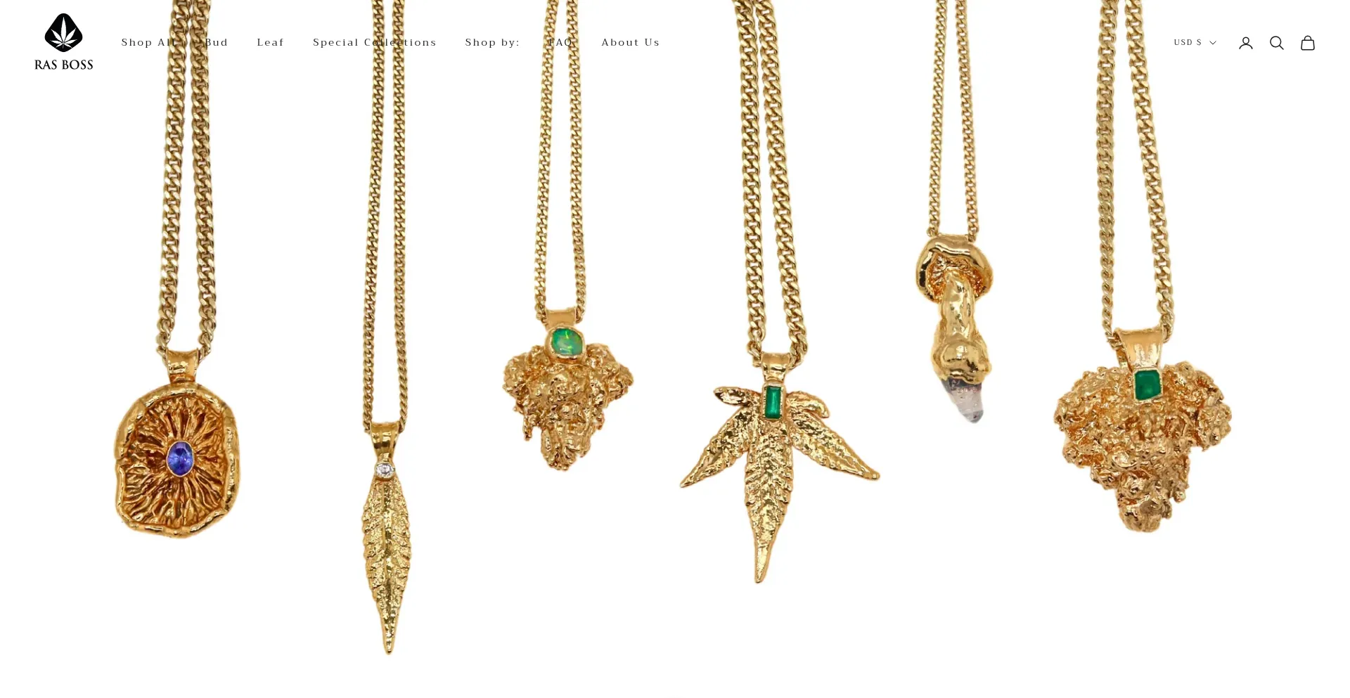 Since 2014, Ras Boss has been the original wearable cannabis art brand, handcrafting gold dipped cannabis buds, leaves, and mushrooms from real plants. Discover cannabis pendant...