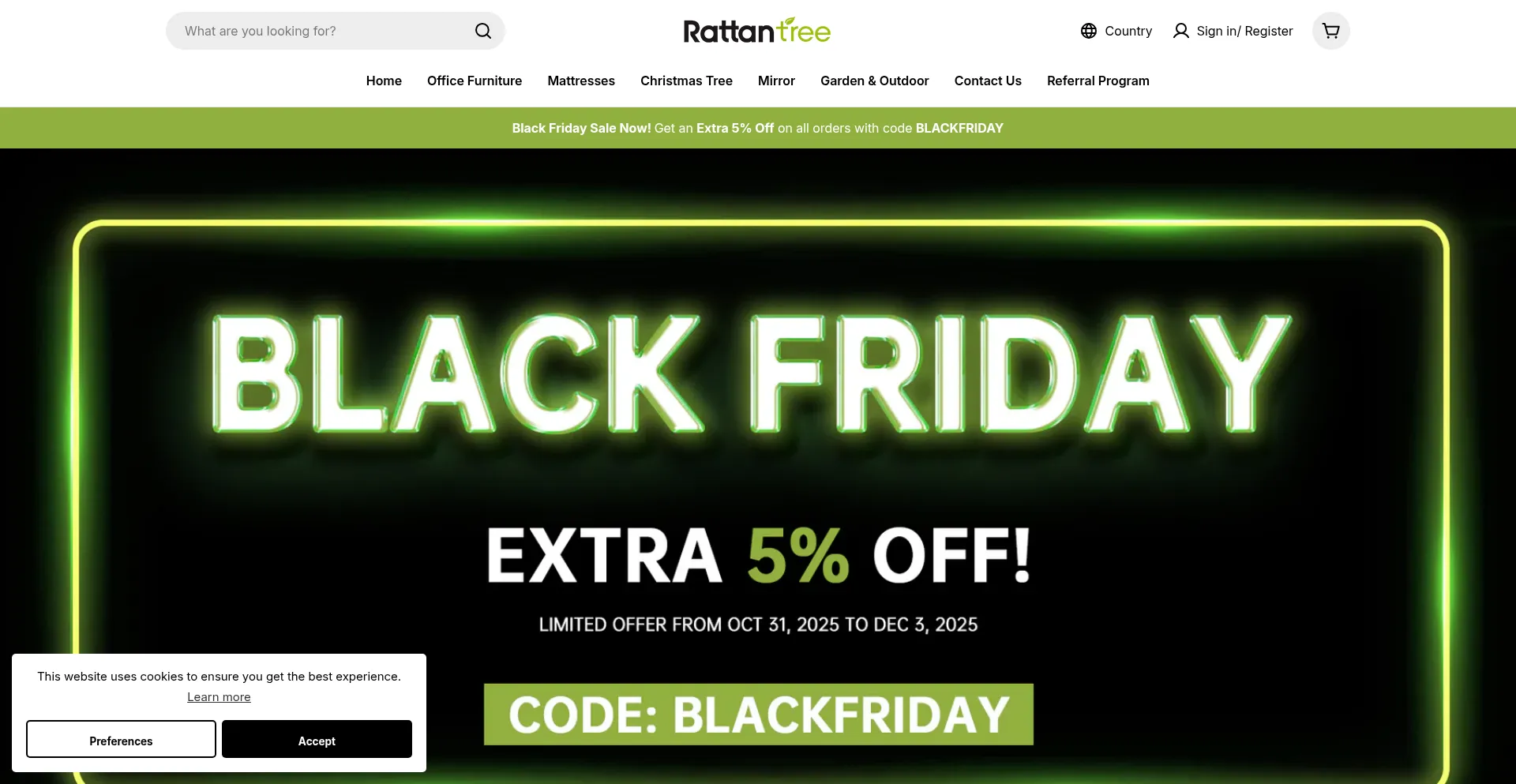 该网站利用流行产品名称和品牌来吸引流量并产生用户兴趣。这些产品可能通过促销活动或折扣策略提供,旨在增加 rattantree.com 的访客参与度和转化率。