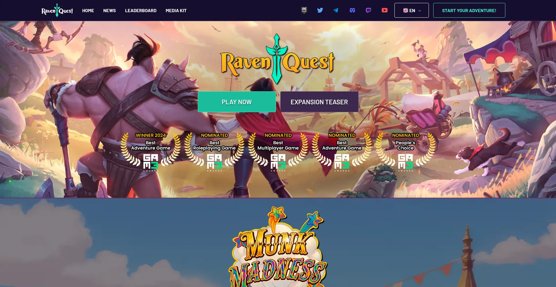 网站上存在社交媒体链接表明 ravenquest.io 在社交媒体上维护官方账户,这是可信度和参与度的积极信号。
