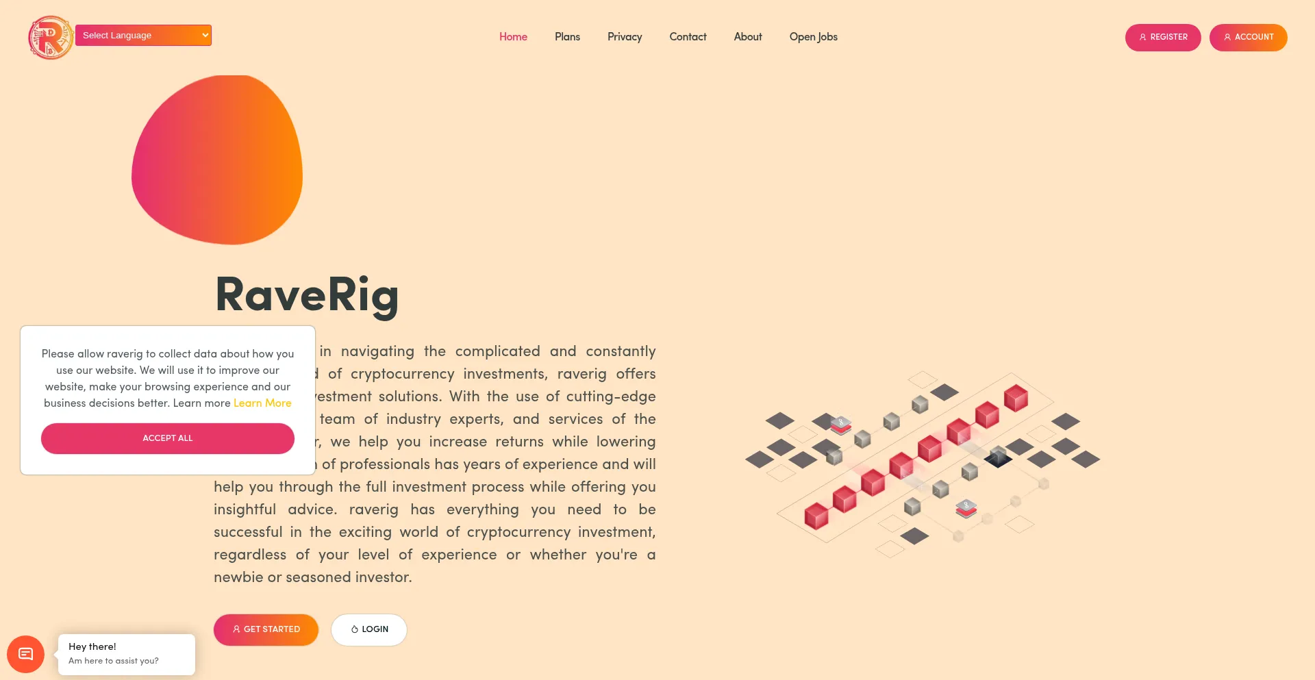 网站 raverig.com 可能提供云挖矿服务或加密货币挖矿投资。一些平台提供合法的挖矿租赁服务,而其他平台可能使用虚假的挖矿仪表板来显示无法提取的虚拟收益。