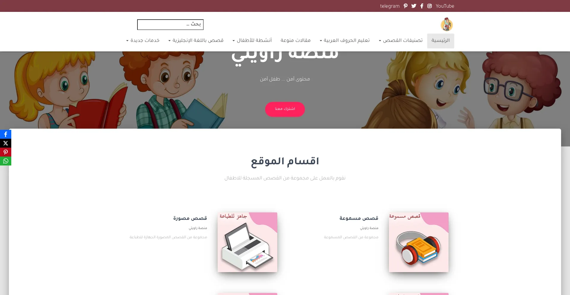 网站上存在社交媒体链接表明 rawiaty.com 在社交媒体上维护官方账户,这是可信度和参与度的积极信号。