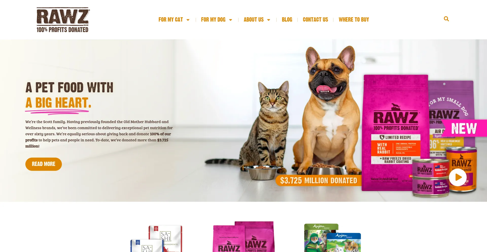 Premium natural pet food for dogs & cats. 100% of profits donated to help pets in need and people with spinal cord injuries. Shop RAWZ today.