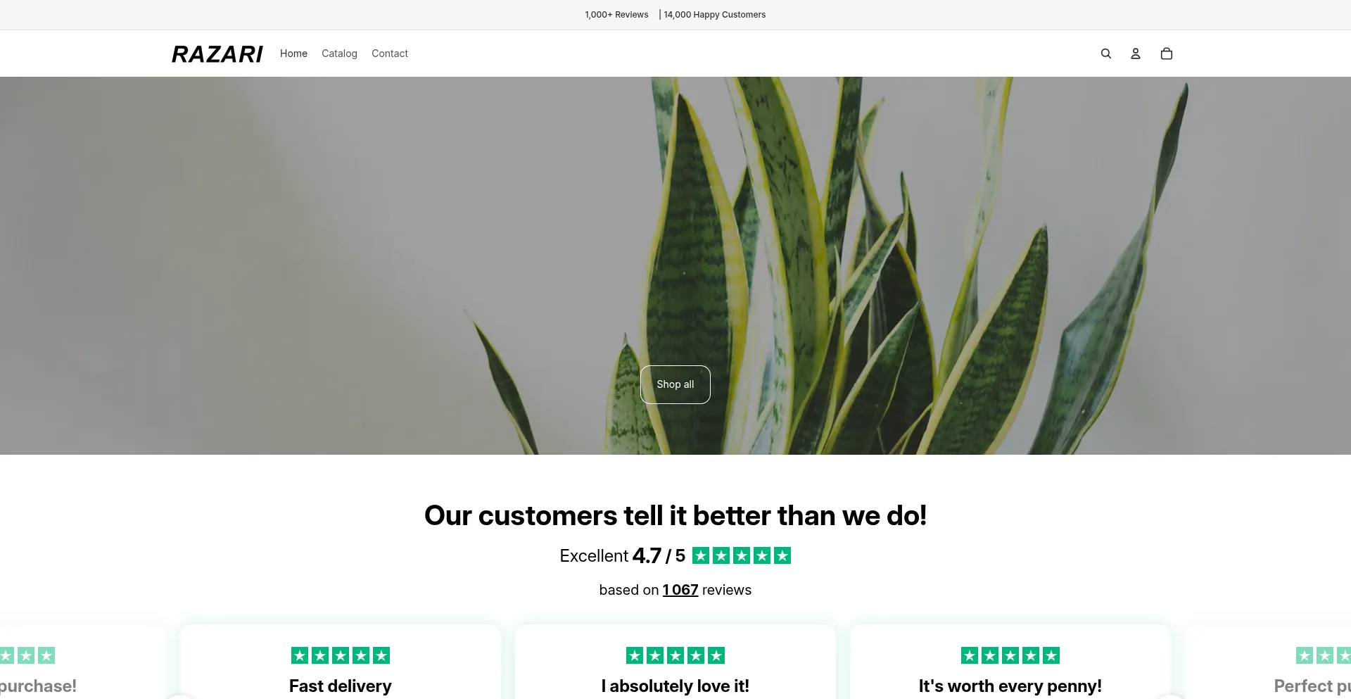 网站 razari-store.myshopify.com 使用免费电子商务平台解决方案,这可能表明成本意识运营,但也可能暗示与企业级解决方案相比在安全功能、客户支持或高级功能方面的限制。