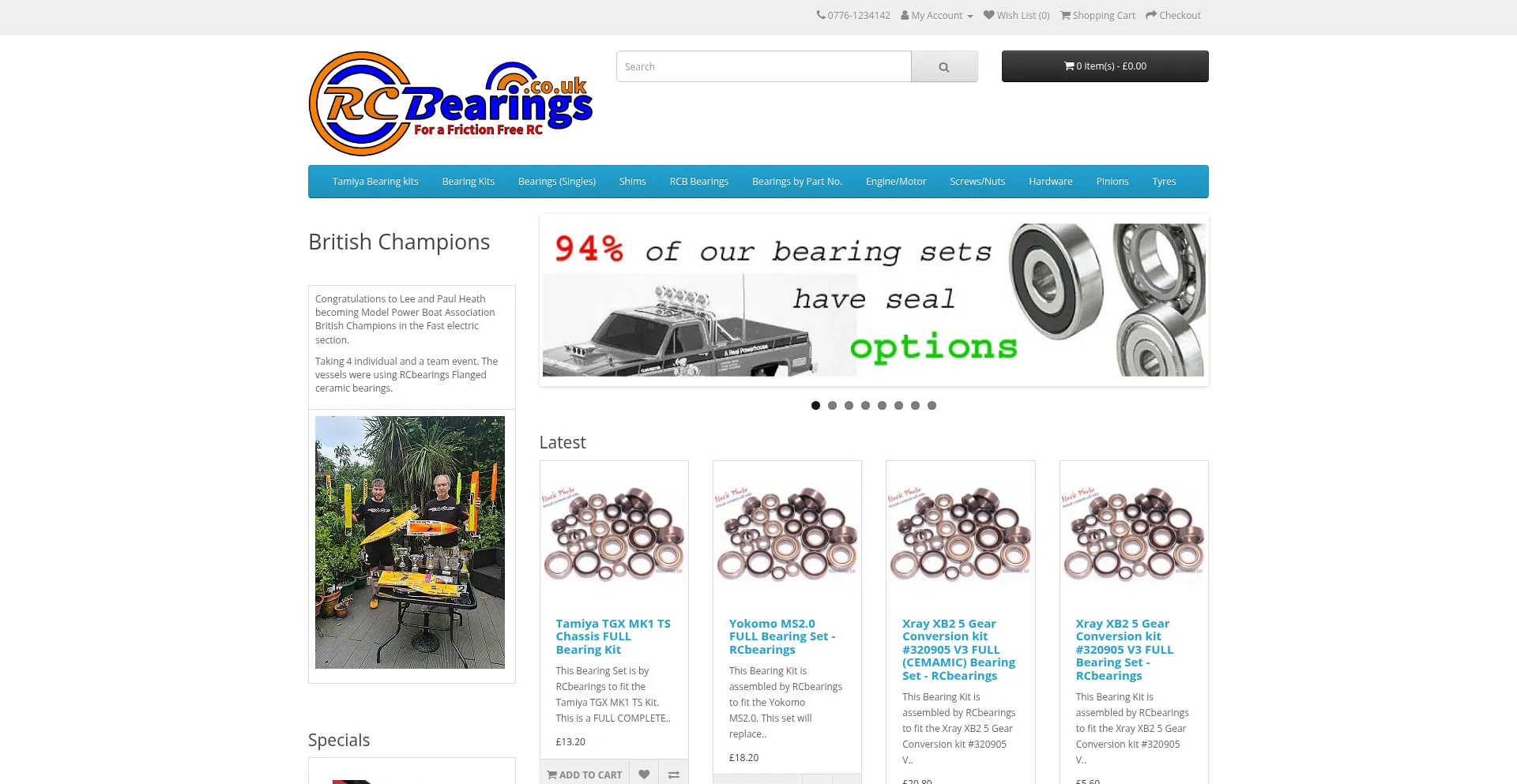 RCbearings for all your radio control model engine, motor and wheel bearings. Extensive selection of bearing kits and friendly service.