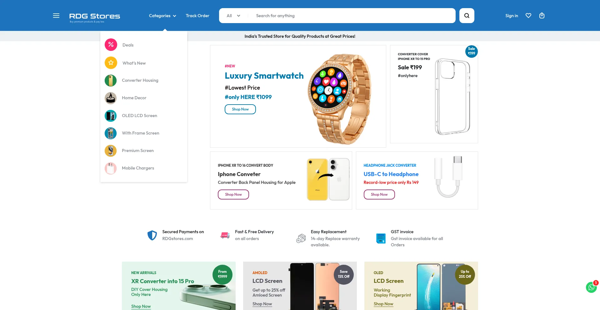 RDG Stores – Buy Mobile Display LCD Screen Combo & Mobile Parts & More