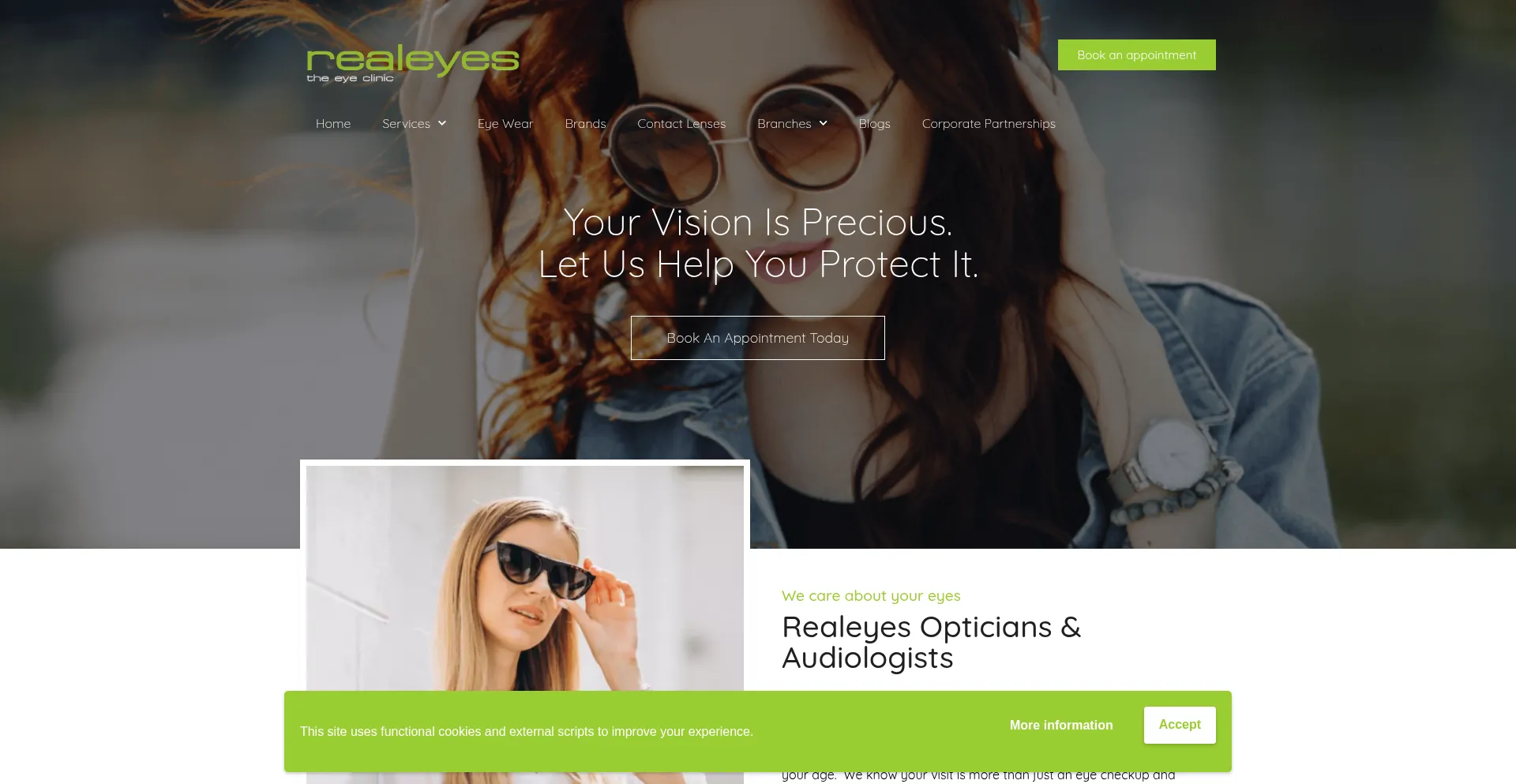 网站上存在社交媒体链接表明 realeyesuk.com 在社交媒体上维护官方账户,这是可信度和参与度的积极信号。