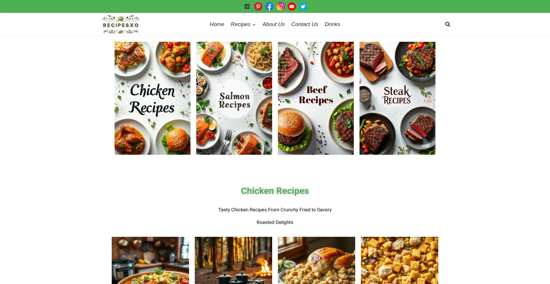 网站上存在社交媒体链接表明 recipesxo.com 在社交媒体上维护官方账户,这是可信度和参与度的积极信号。