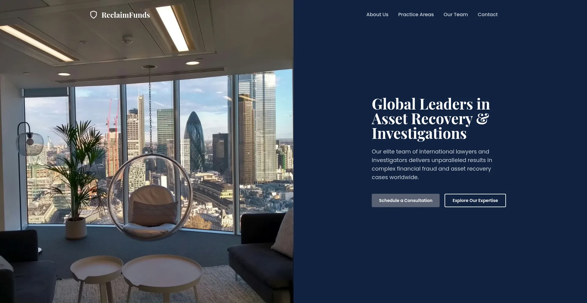 An international law firm with a dedicated investigator-division, specializing in asset recovery and complex financial fraud cases. Trustworthy, authoritative, modern.