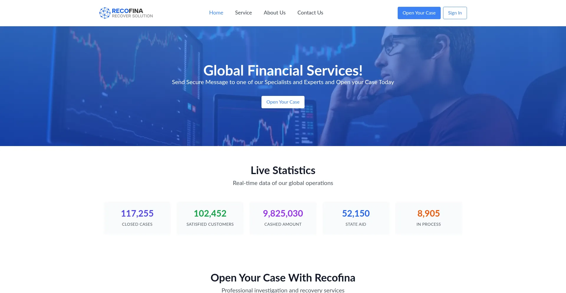 网站 recofina.com 宣传针对丢失或被盗资产的资金恢复服务。虽然一些在应急费用结构上运营,其他可能需要预付款,这可能表明欺诈运营。在聘请此类服务前验证凭据和监管合规性。