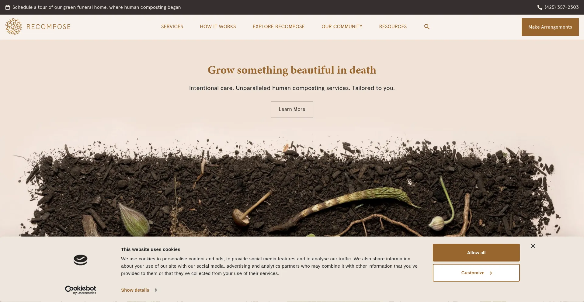 Recompose is a green funeral home specializing in human composting. Learn more about our services and custom ceremony offerings.