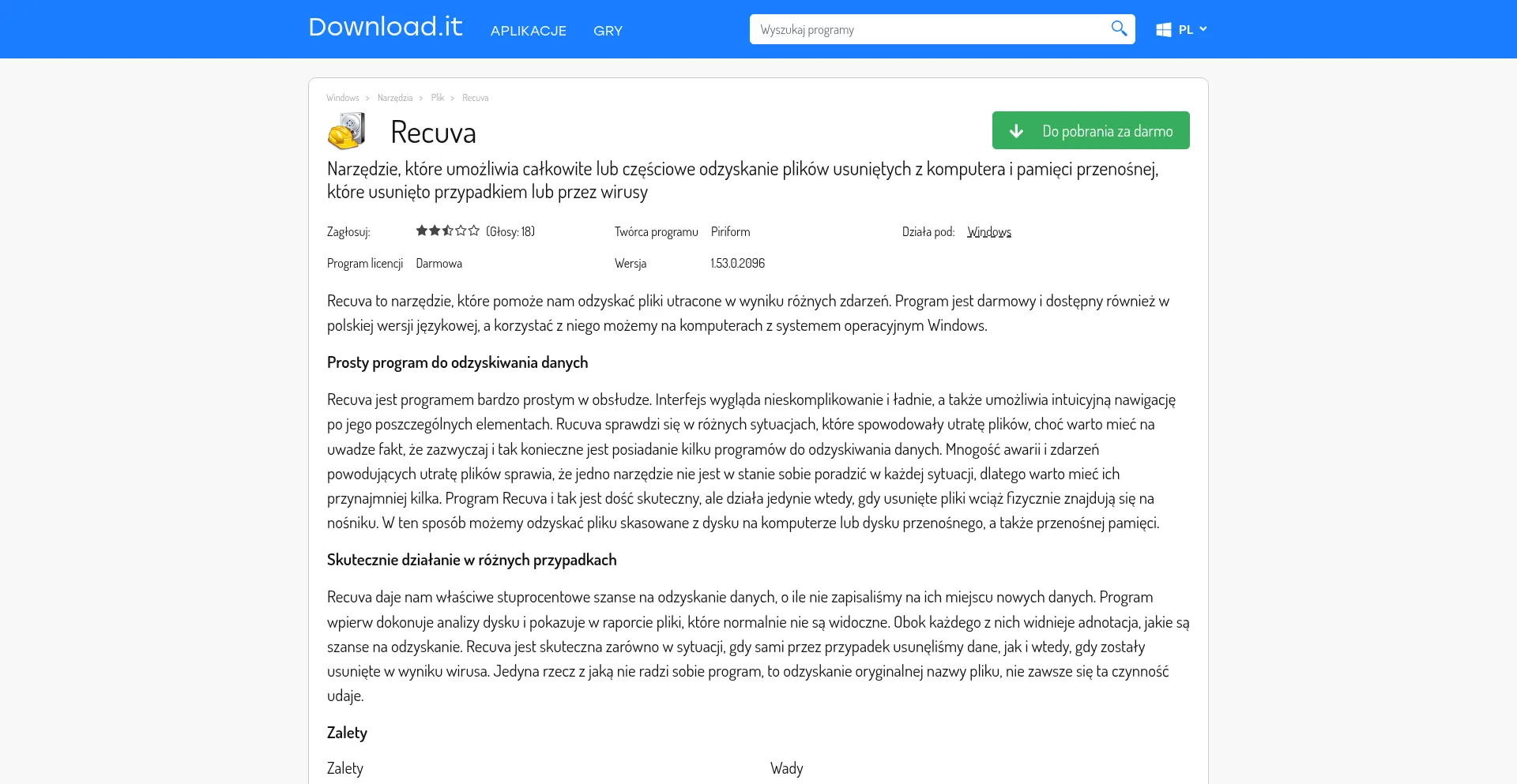 Pobierz Recuva 1.53.0.2096. Narzędzie, które umożliwia całkowite lub częściowe odzyskanie plików usuniętych z komputera i pamięci przenośnej, które usunięto przypadk...