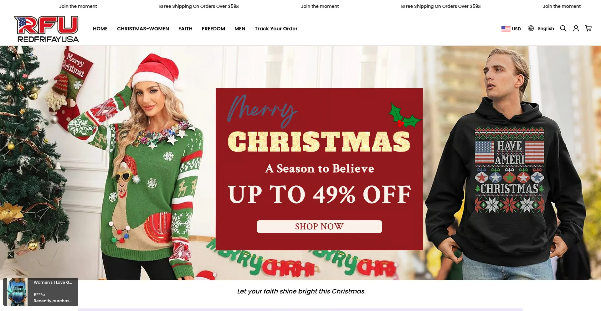分析表明 redfridayusa.com 作为电子商务平台运营,促进商品或服务的在线交易。该网站实现了购物车功能、支付处理系统和产品目录功能,这些是商业零售运营的典型特征。
