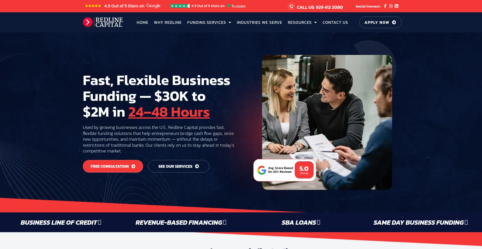 Used by growing businesses across the U.S., Redline Capital provides fast, flexible funding solutions that help entrepreneurs bridge cash flow gaps, seize new opportunities, and...
