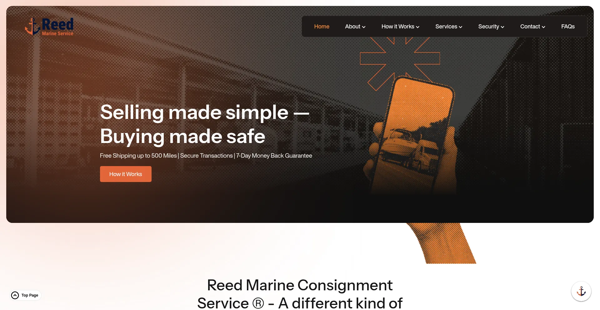 Sell your car, boat, RV, or equipment easily with Reed Marine Consignment Service. Free shipping up to 500 miles, secure payments, and a no-sale, no-fee guarantee.