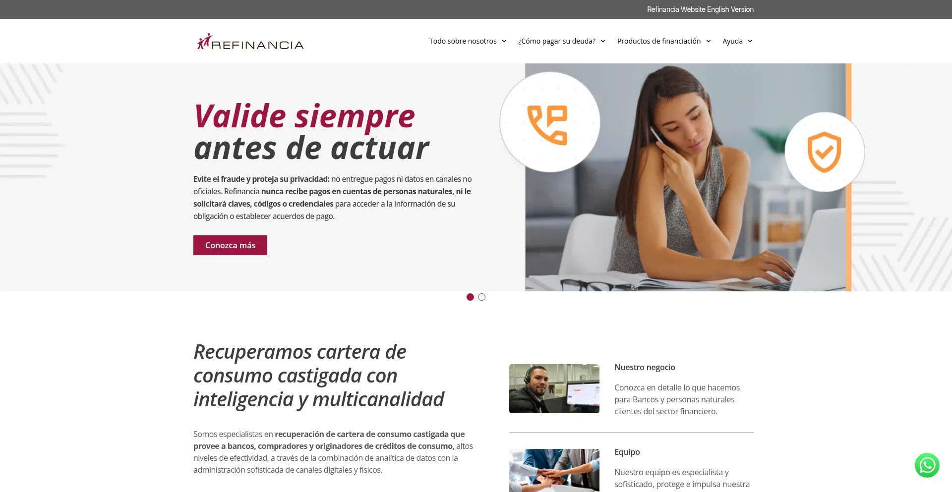 网站上存在社交媒体链接表明 refinancia.co 在社交媒体上维护官方账户,这是可信度和参与度的积极信号。