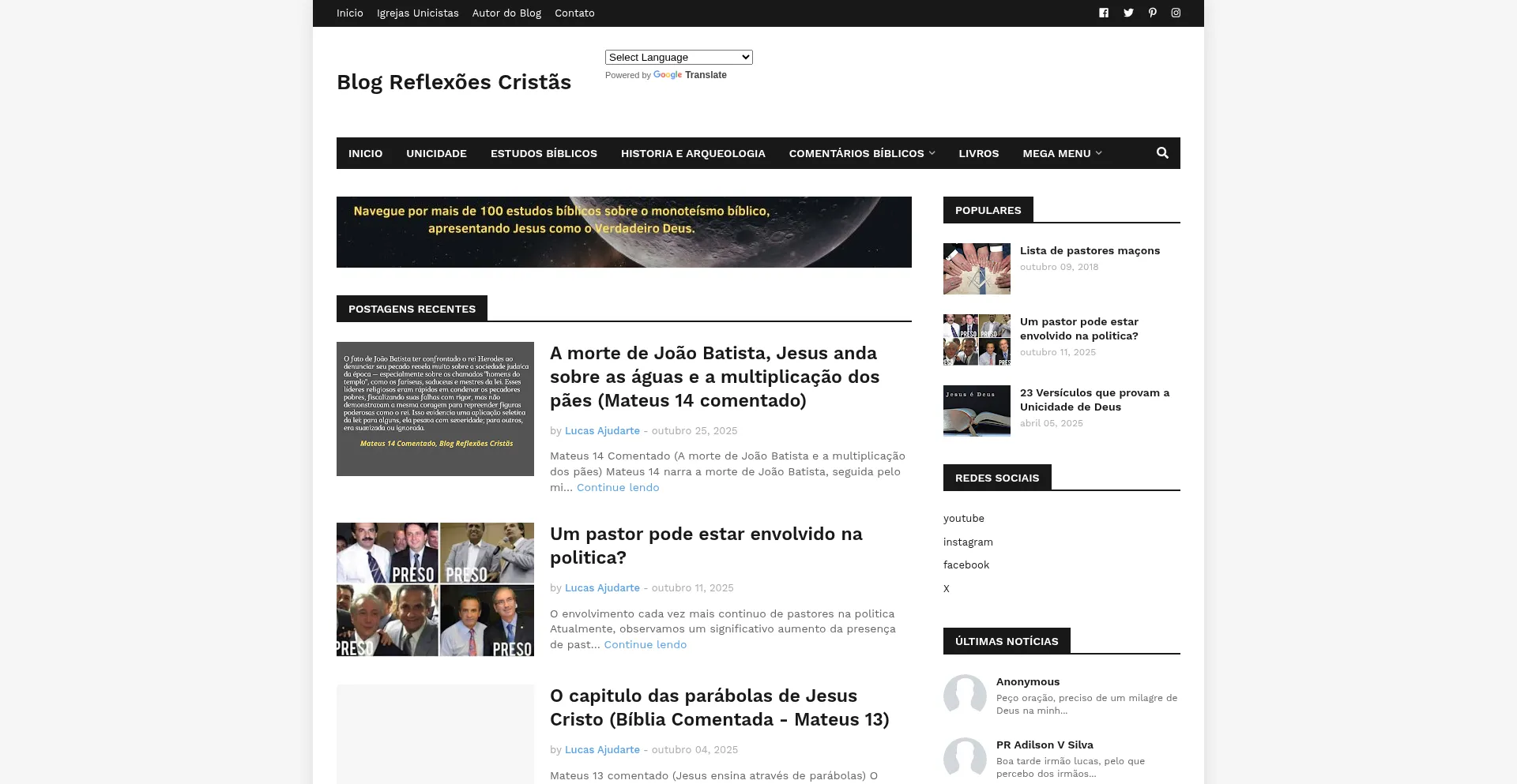 Blog unicista dedicado a estudos, comentários e reflexões cristãs voltadas para o público cristão. Abordamos temas como a unicidade de Deus