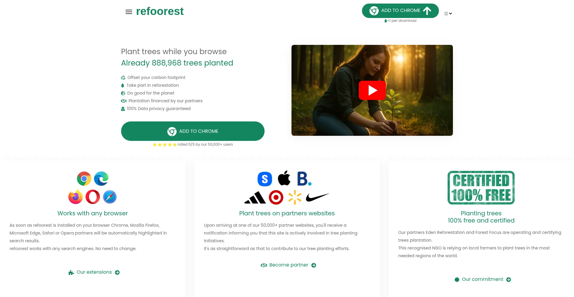 Add refoorest to your browser to fight global warming, offset your carbon footprint and plant trees for free. This is working with all computers.