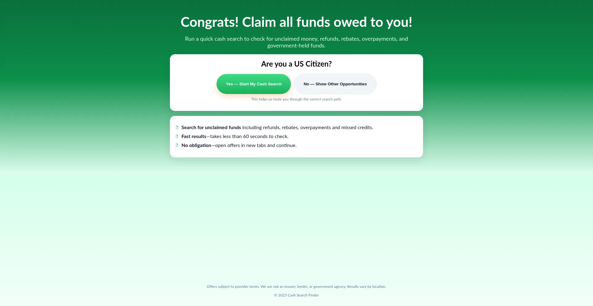 Run a quick cash search to check for unclaimed money, refunds, rebates, overpayments, and government-held funds.