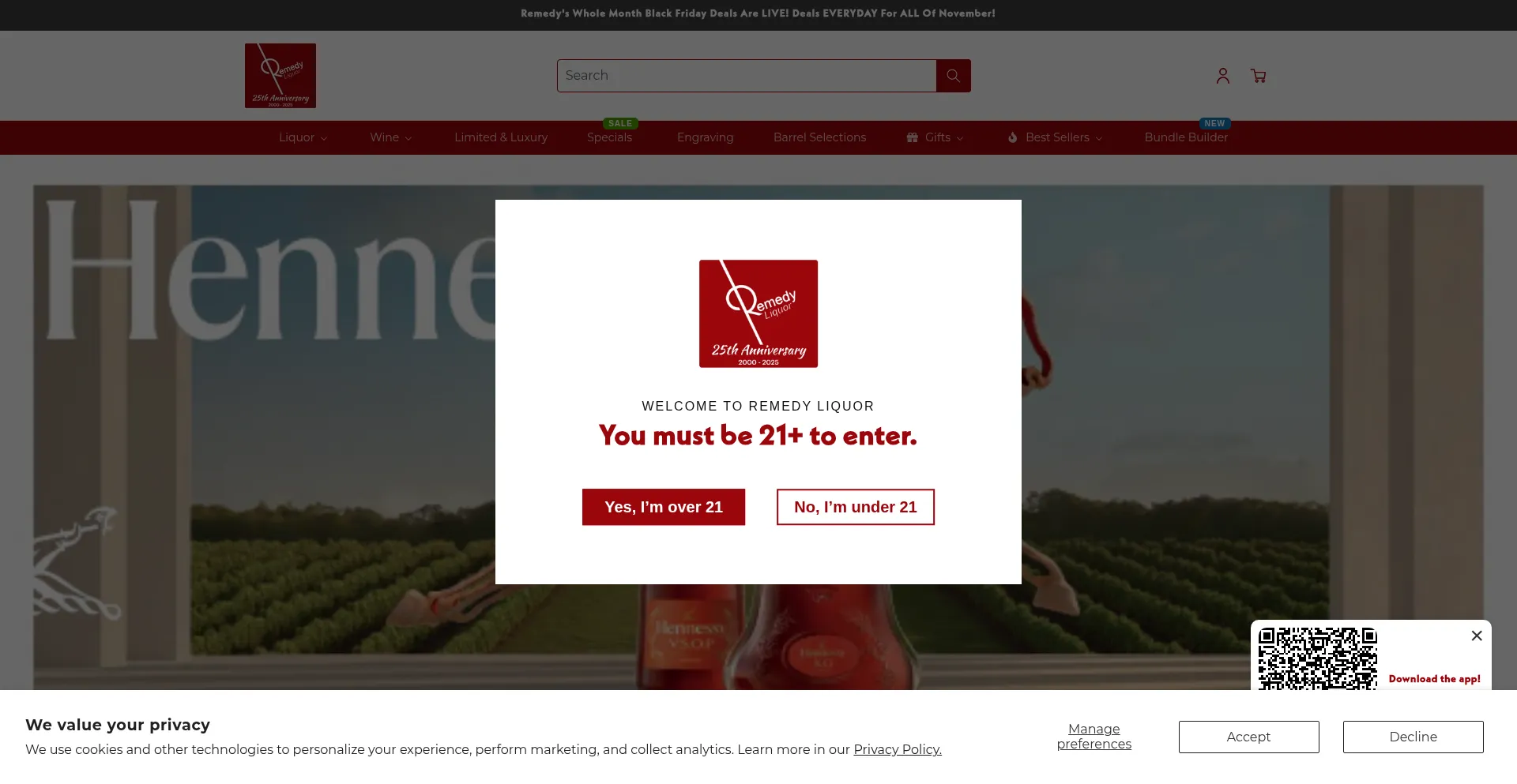 该网站实现符合GDPR或CCPA等隐私法规的cookie同意机制。这表明 remedyliquor.com 遵守数据保护标准并为用户提供对个人数据收集实践的控制。