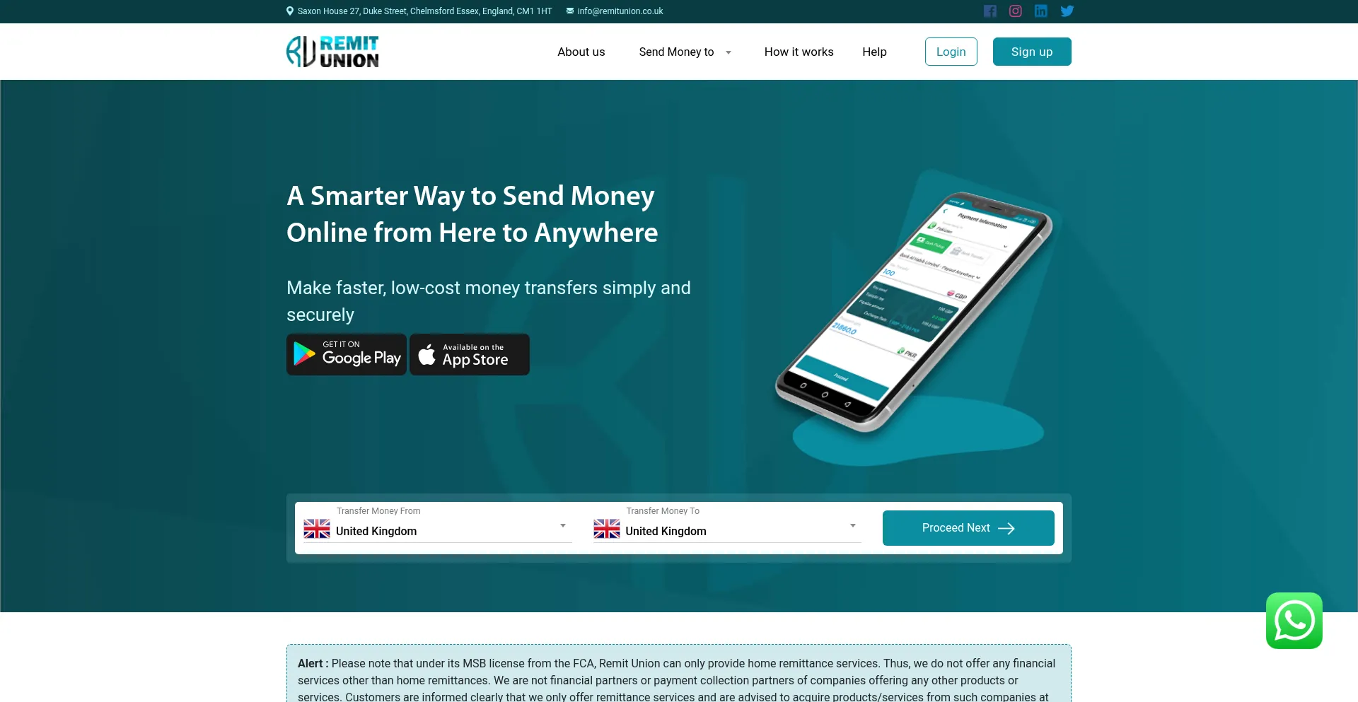 remitunion.co.uk 提供 Android 设备移动应用程序,表明平台存在已扩展到网络服务之外。