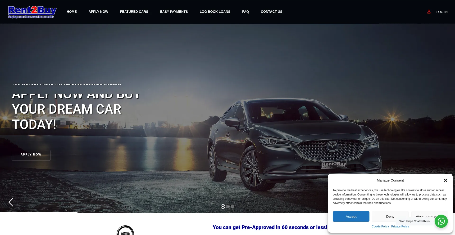 Apply now and buy your car today! Get Pre-Approved in 60 seconds or less and you can start looking at any dealership you choose for your new pre-owned car.