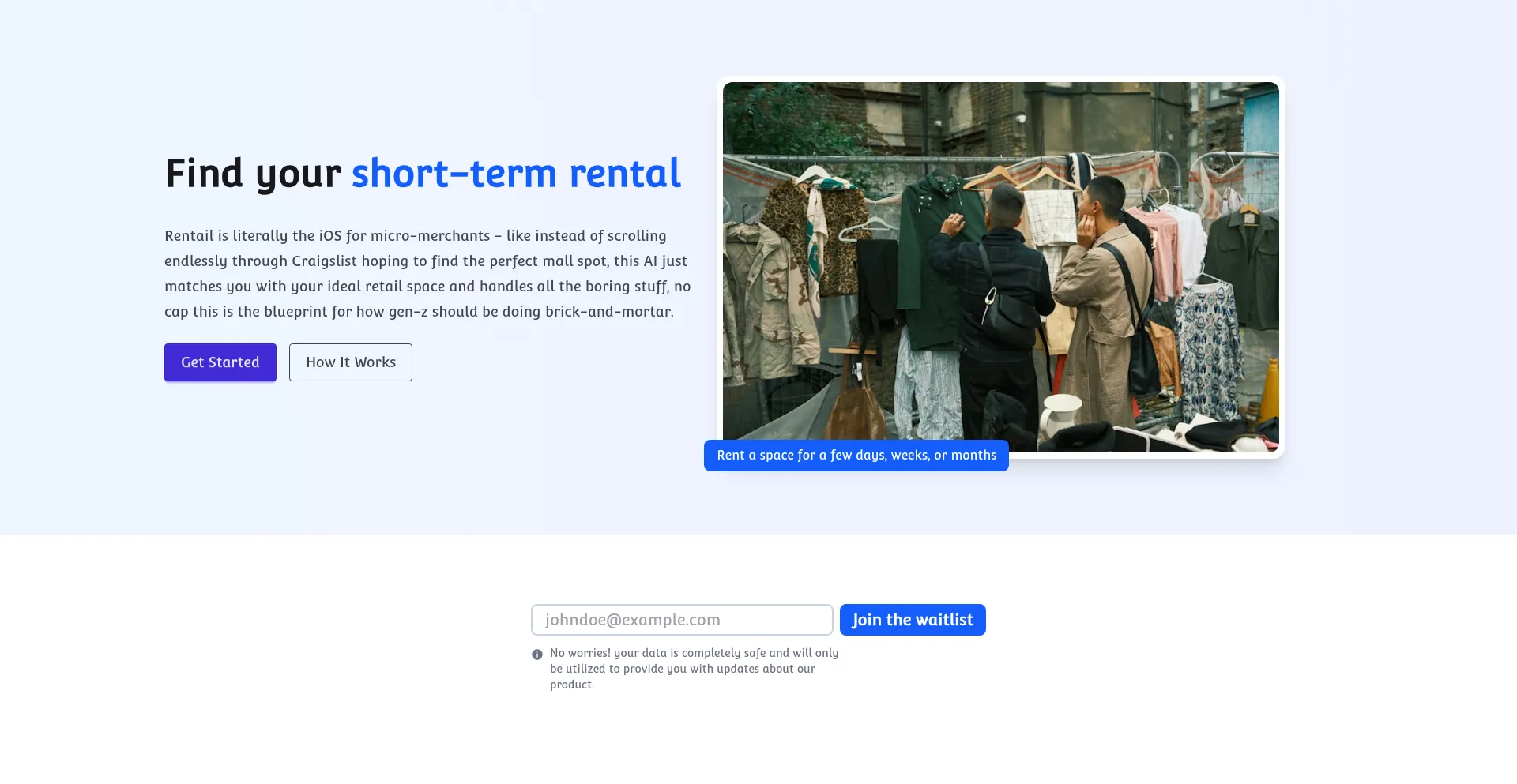 该网站实现数据收集表单,请求个人信息,包括姓名、电子邮件地址、电话号码或其他敏感详细信息。用户应验证 rentail.space 的合法性并在提交个人数据前查看隐私政策。