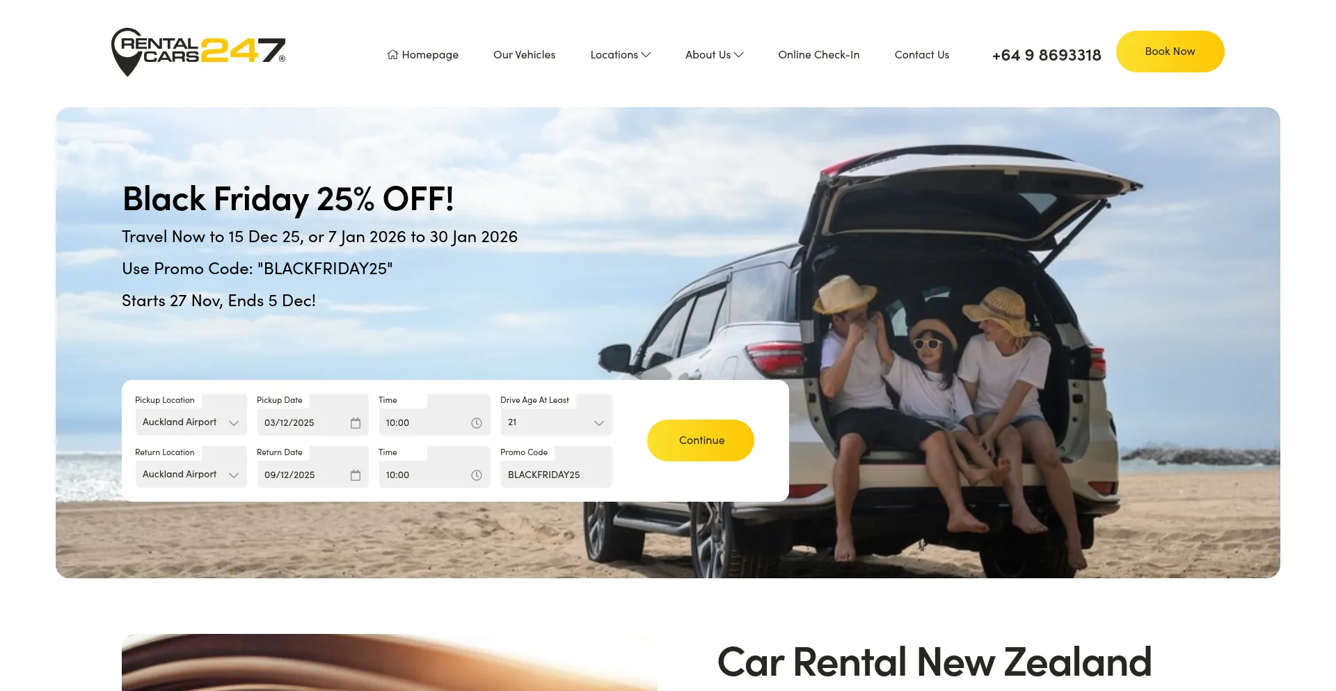 Find affordable car rental in New Zealand with RentalCars247. Hire a car today and explore NZ with ease. Best deals on rental cars NZ-wide.