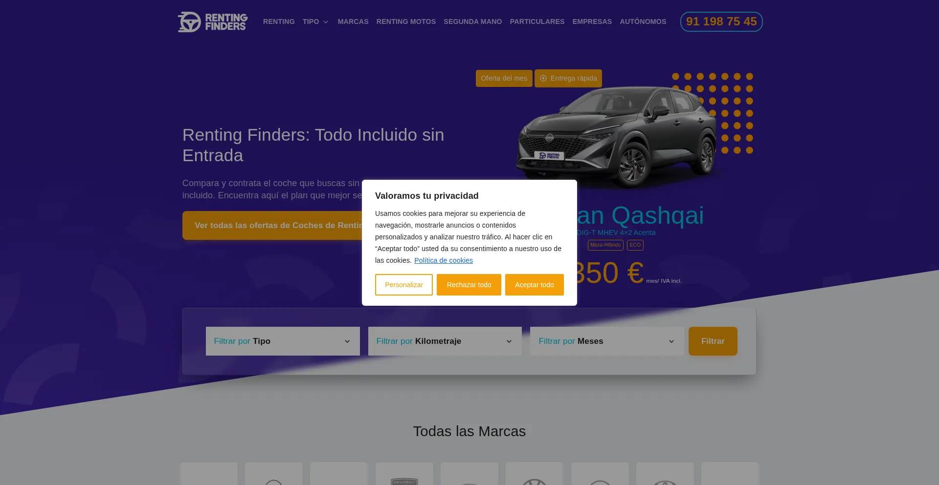 Compara y contrata el mejor Renting de Coches. Sin Entrada y con Todo Incluido. ¡Los mejores precios! Con todas las garantías del renting