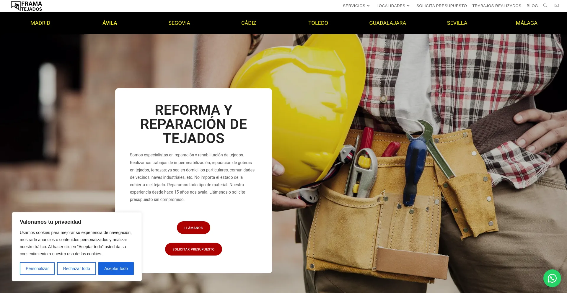 该网站实现符合GDPR或CCPA等隐私法规的cookie同意机制。这表明 reparacion-tejados.com 遵守数据保护标准并为用户提供对个人数据收集实践的控制。