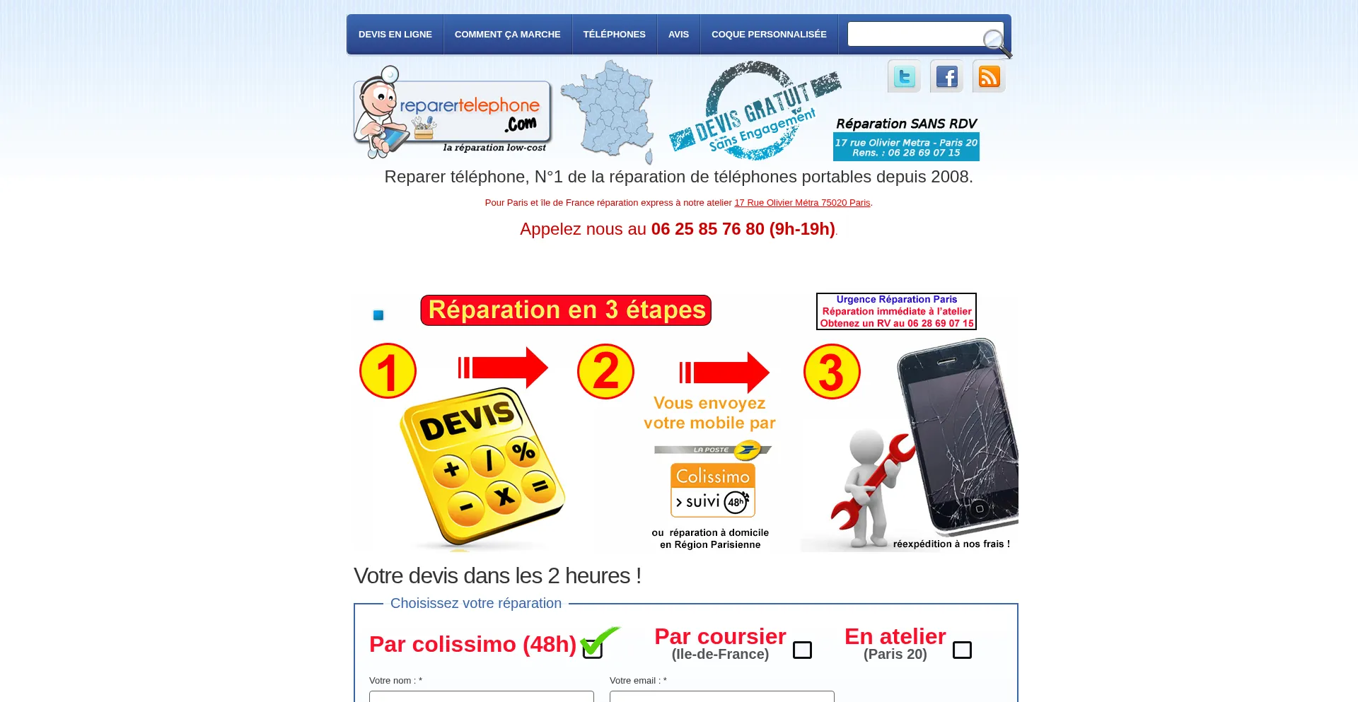 Reparertelephone.com est le N°1 en France dans la réparation de téléphones. Devis en ligne gratuit. Réparation Express sans RDV en 15mn ☎ 0628690715 - Atelier au 17 Rue O...