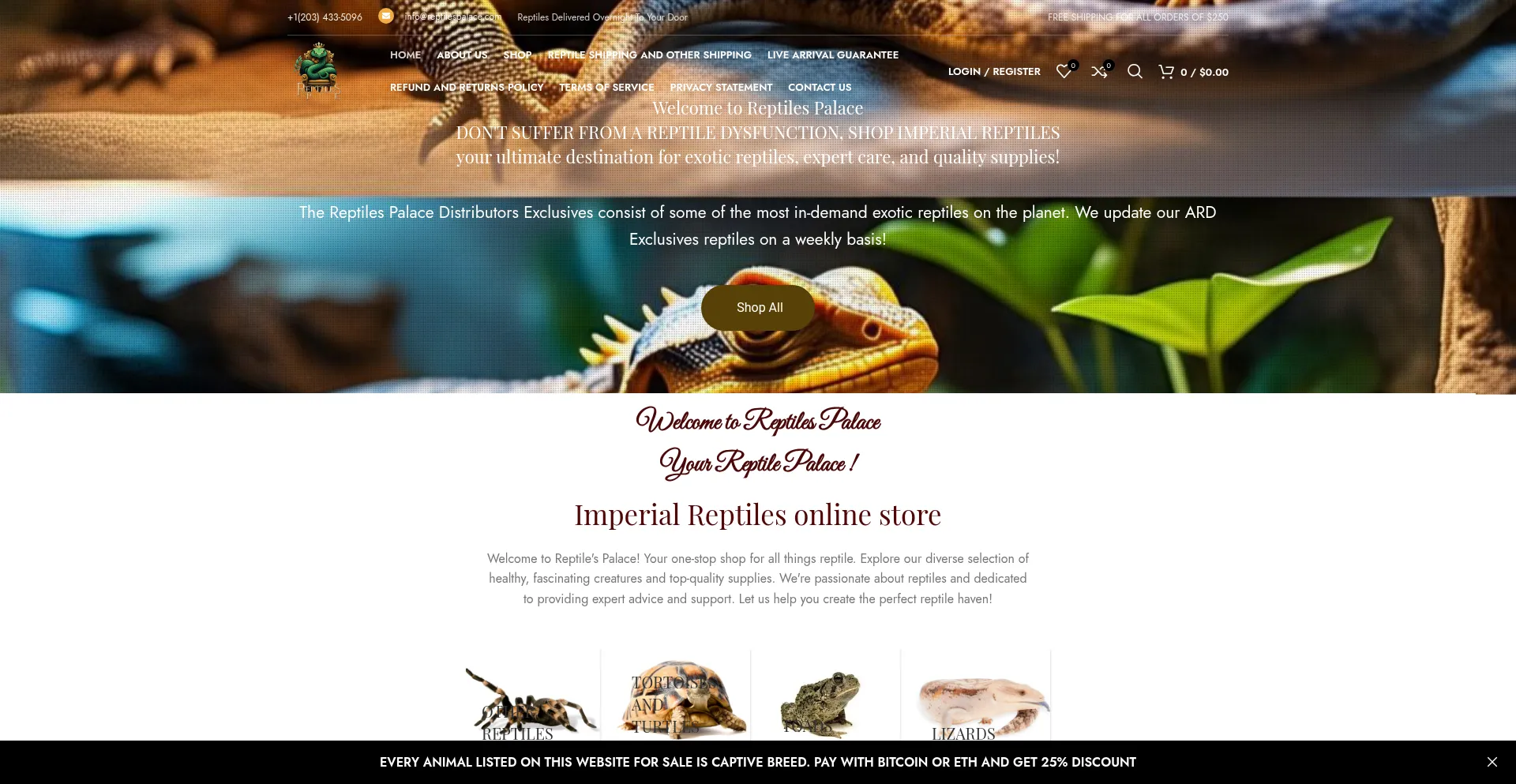 分析表明 reptilespalace.com 作为电子商务平台运营,促进商品或服务的在线交易。该网站实现了购物车功能、支付处理系统和产品目录功能,这些是商业零售运营的典型特征。