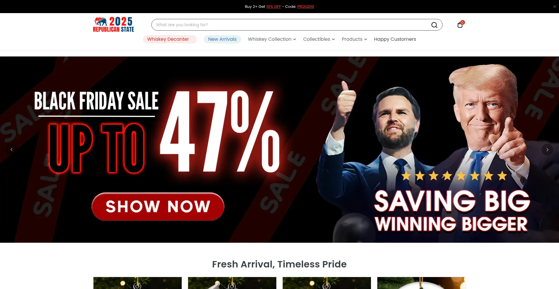 分析表明 republicanstate.com 作为电子商务平台运营,促进商品或服务的在线交易。该网站实现了购物车功能、支付处理系统和产品目录功能,这些是商业零售运营的典型特征。
