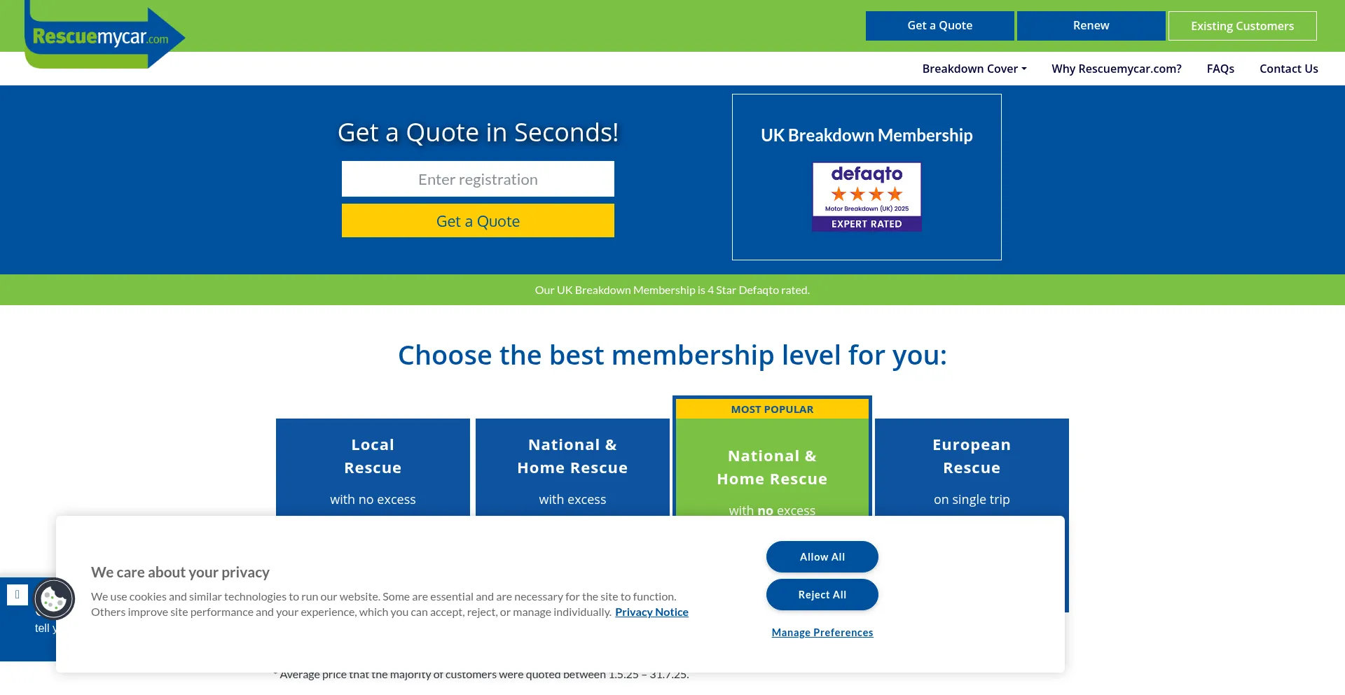 Breakdown cover from £21/Yr - Rescuemycar.com