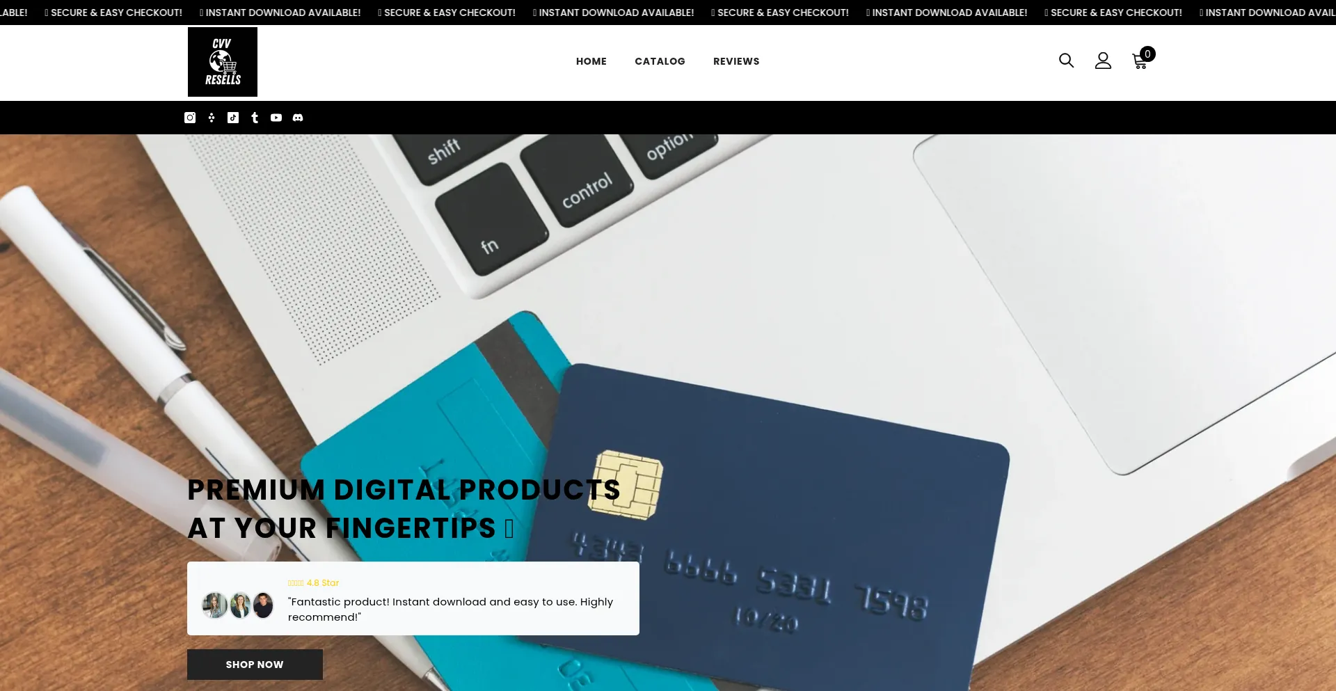 网站上存在社交媒体链接表明 resellcvv.com 在社交媒体上维护官方账户,这是可信度和参与度的积极信号。