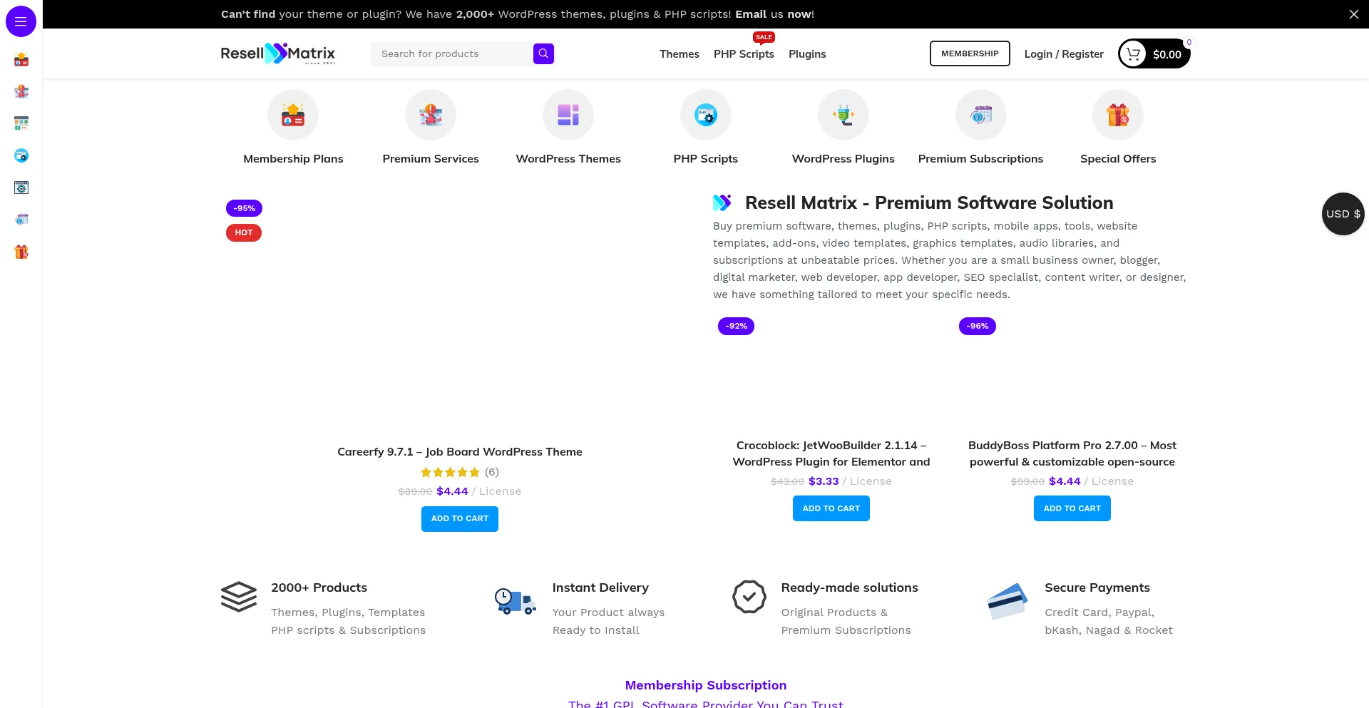 Buy premium software, themes, plugins, PHP scripts, mobile app template, SEO tools, video graphics template & subscriptions at reseller price