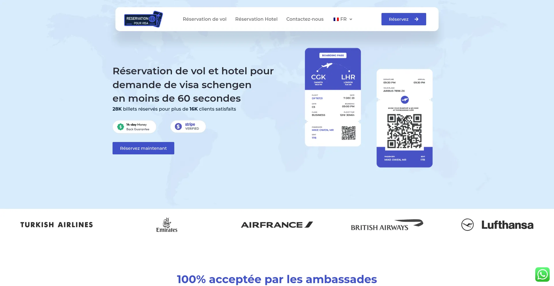 Service de réservation pour visa : vol + hôtel valides pour dépôt en ambassade. Rapide, simple et approuvé.