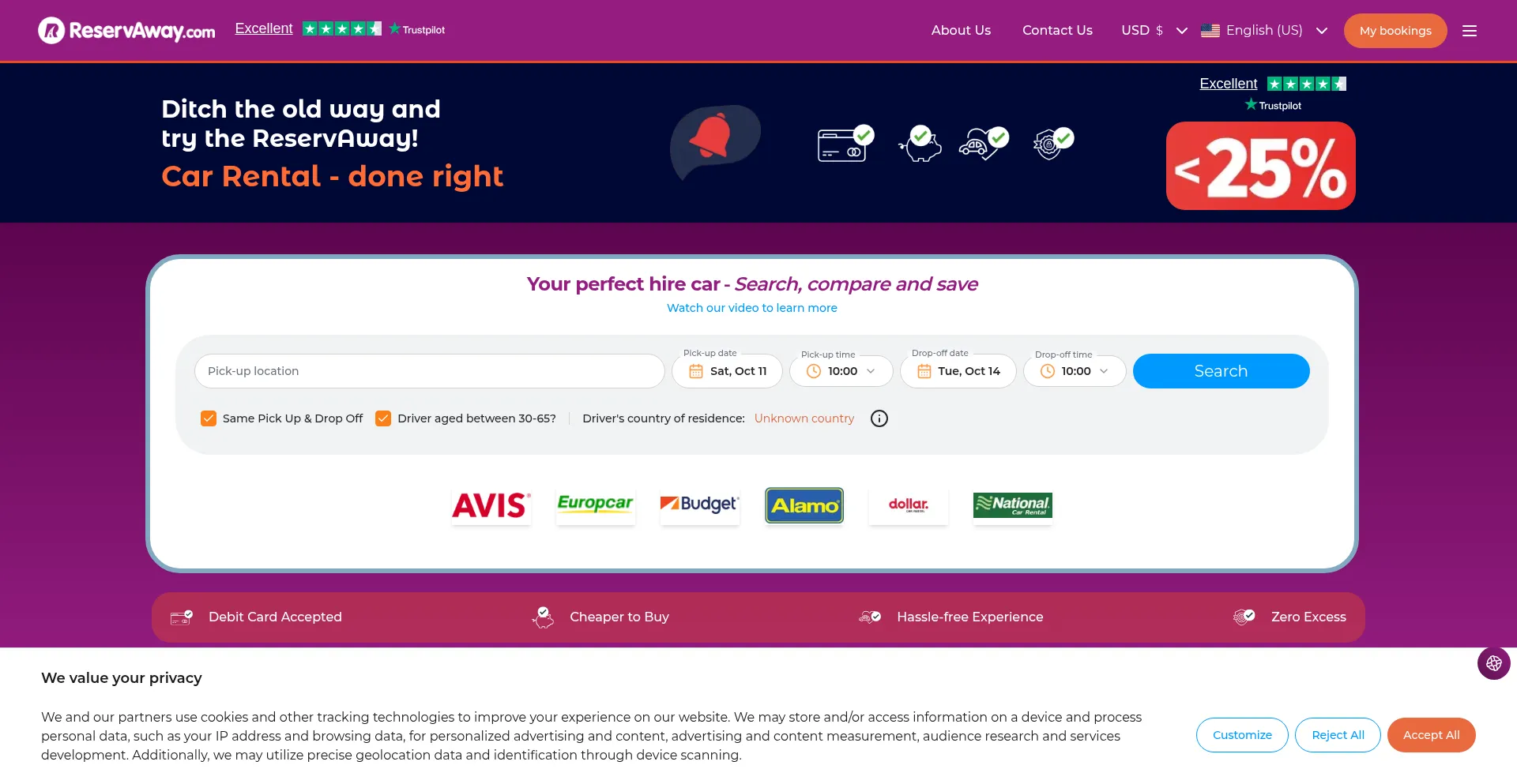 该网站实现符合GDPR或CCPA等隐私法规的cookie同意机制。这表明 reservaway.com 遵守数据保护标准并为用户提供对个人数据收集实践的控制。
