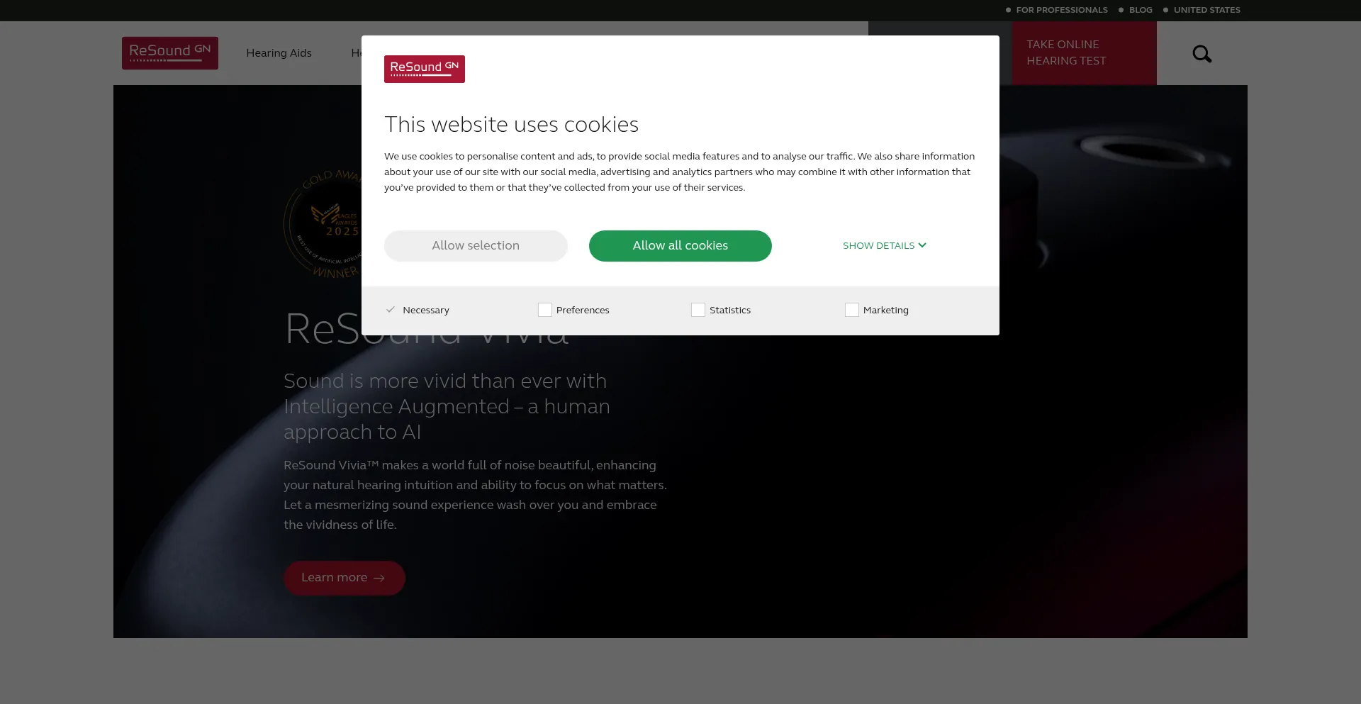 该网站实现符合GDPR或CCPA等隐私法规的cookie同意机制。这表明 resound.com 遵守数据保护标准并为用户提供对个人数据收集实践的控制。