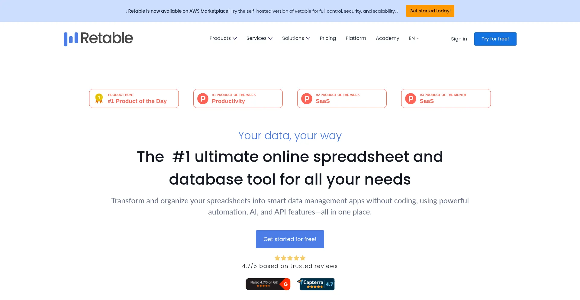 Retable is a modern online spreadsheet for teams. Manage data, collaborate in real time, and integrate with your favorite tools. Try Retable free today!