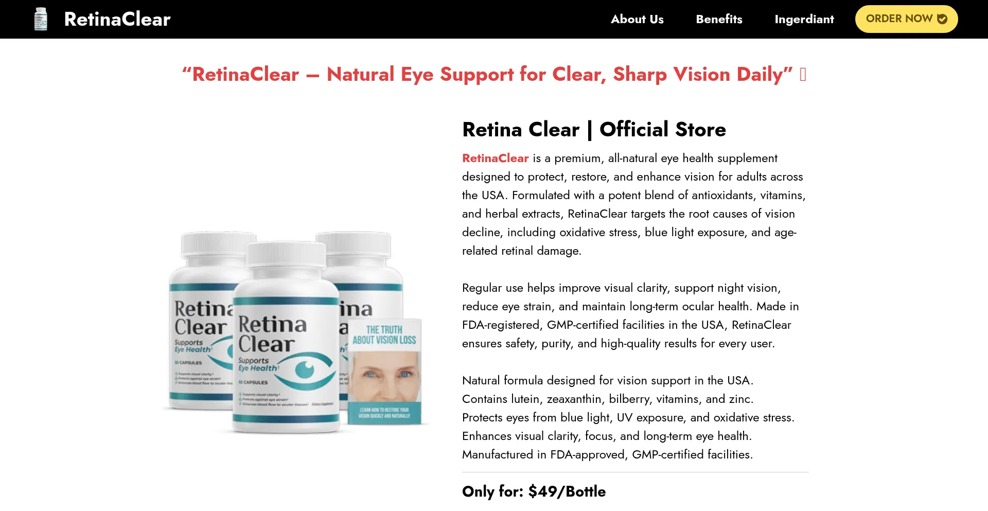 RetinaClear – Natural Eye Support for Clear Vision USA