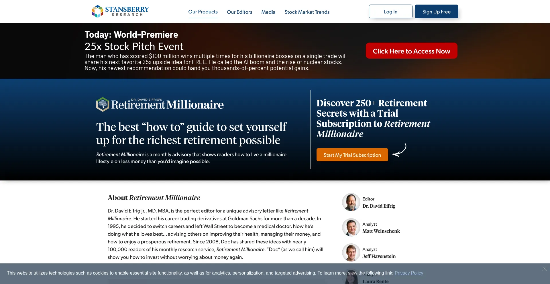 该网站实现符合GDPR或CCPA等隐私法规的cookie同意机制。这表明 retirementmillionaire.com 遵守数据保护标准并为用户提供对个人数据收集实践的控制。