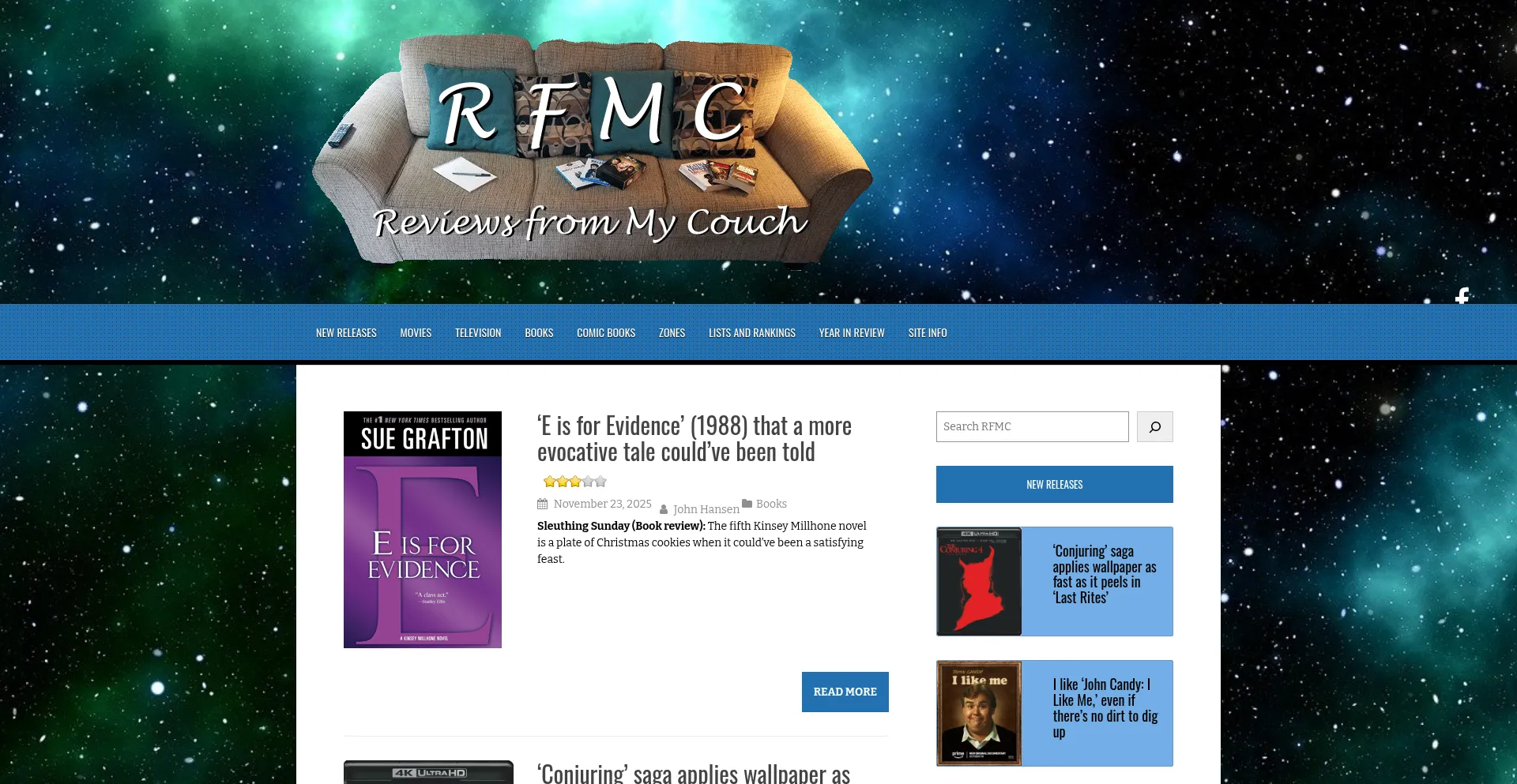 Launched in 2009, and rebranded in 2021, Reviews from My Couch features reviews of new and old movies, TV shows, books and comics by John Hansen.