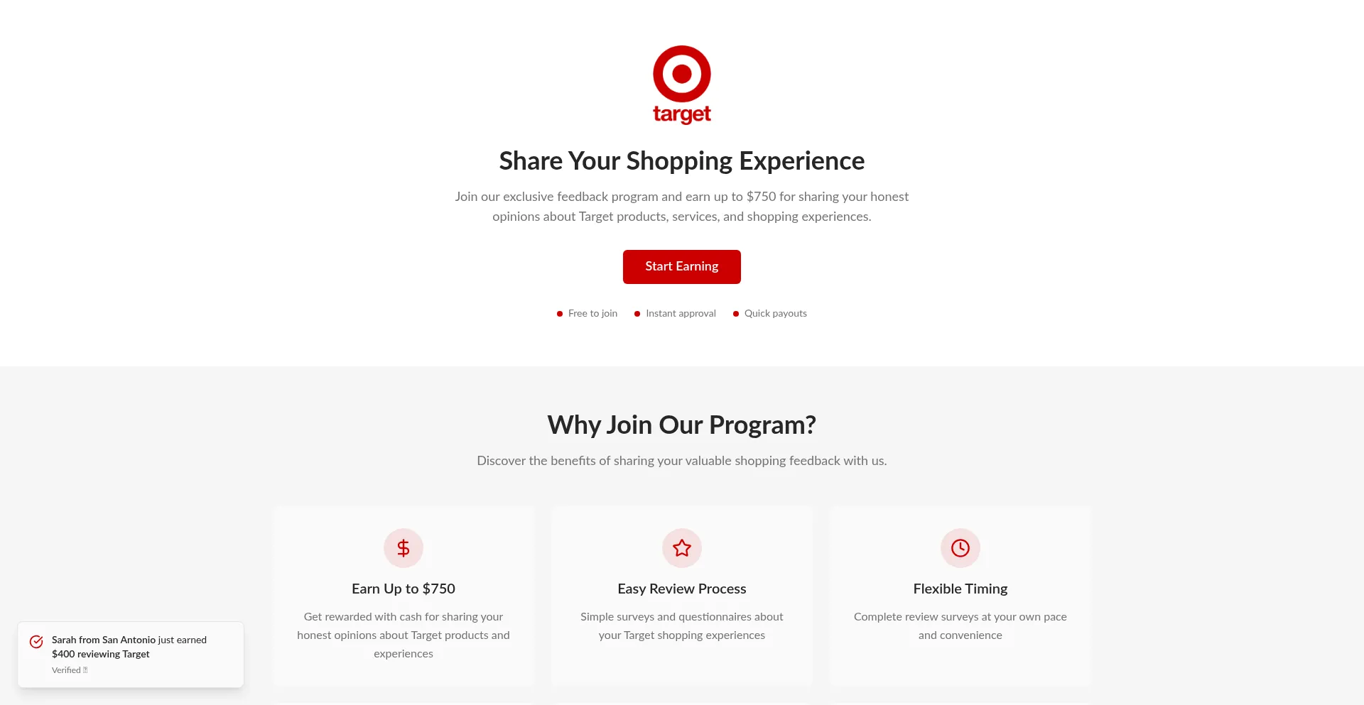 Join our exclusive Target feedback program and earn up to $750 for sharing your honest opinions about products, services, and shopping experiences.