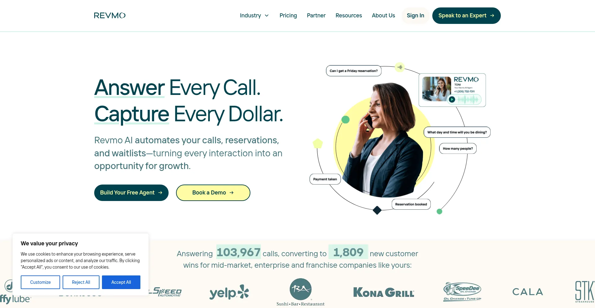 Capture every lead with Revmo.ai’s voice automation built for sales, restaurants, and service teams.