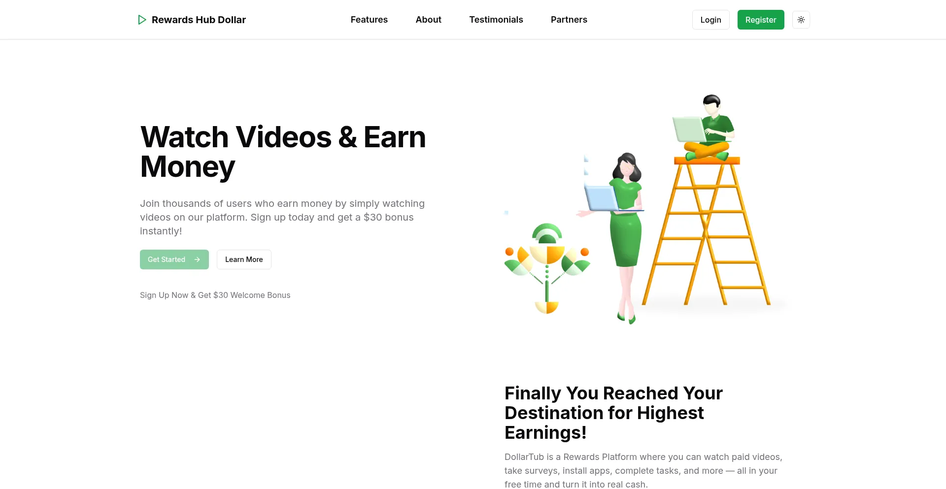 Join thousands of users who earn money by watching videos on our platform. Sign up today and get a $30 bonus instantly!
