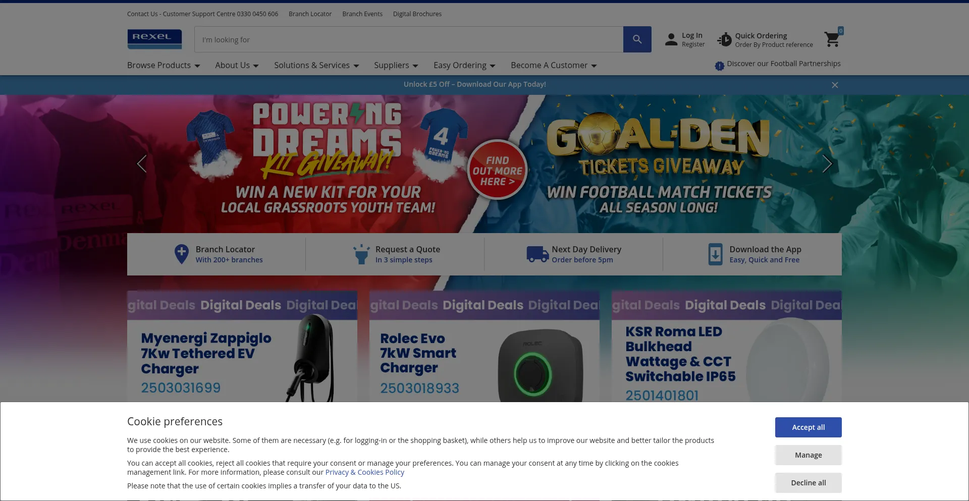 该网站实现符合GDPR或CCPA等隐私法规的cookie同意机制。这表明 rexel.co.uk 遵守数据保护标准并为用户提供对个人数据收集实践的控制。