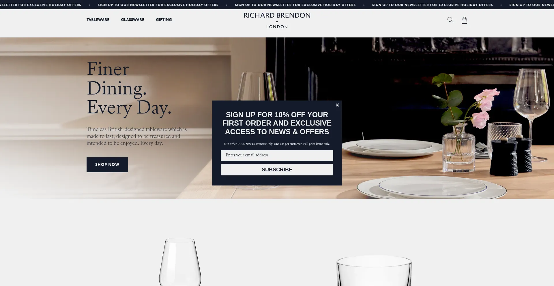 Shop fine bone china table and crystal glassware from Richard Brendon.